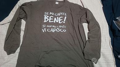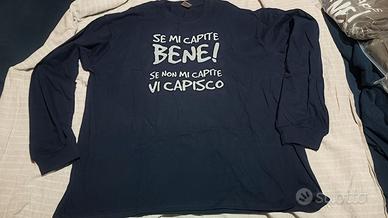 A 13 euro cadauna vendo 3 magliette a maniche lunghe in Cotone taglia XXL con scritte divertenti. Sono Nuove, mai usate né lavate. Inoltre ho tantissime t- shirt a maniche corte in cotone con scritte divertenti e simpatiche taglia XXL ( tutte NUOVE) a 12,5€ cadauna. Ritiro gratuito vicino al mio domicilio a Trieste. Posso spedire previo pagamento anticipato. P.S.: se vi interessa qualcosa contattatemi che vi creo un'annuncio specifico x la vendita online.