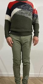 Vendo per errata misura 3 pantaloni in blocco; 1 di marca Zara beige taglia eur 36, e 2 pull&bear blu e verdi taglia eur 38