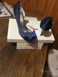 sandali donna con zeppa dorate marca L'Amour n36 scarpe bronzo marca Manya n36 decolté di raso blu marca Melluso n36,50