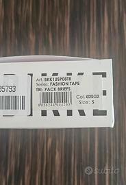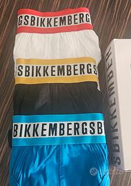 Vendo pacco da 3 slip uomo Bikkembergs in vari colori, blu, nero e bianco con bande a contrasto.