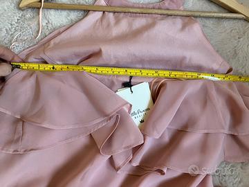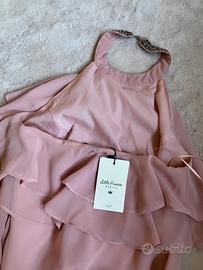 Nuovo con etichetta, abito per occasioni speciali, lunghezza maxi. Colore rosa / rosa antica. Taglia 38 (XS). Lunghezza dal sotto braccio 125.5 cm, circonferenza seno 80 cm. Decorato con rouches. Scollo halter con perline. Schiena scoperta. Mohito.