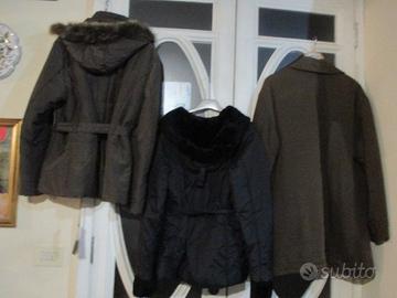 Nr. 3 giubbini imbottiti: il 1° nuovo, mai indossato, taglia XL, ha cappuccio staccabile con bordo di vera pelliccia anch'esso staccabile, si chiude con cerniera e bottoni automatici, ha cinta in vita, 2 tasconi sul davanti, è impermeabile, pagato E 30, vendo a E 17; il 2° marca "Camomilla" taglia 42 colore nero con cappuccio foderato di pelo sempre nero come i polsi, cintura in vita e 3 tasche applicate davanti, si chiude con una lampo, è in ottime condizioni, costa E 19; il 3° taglia 54 in manopesca con collo a camicia si chiude con 4 bottoni e ha 2 tasche inserite ai lati, molto caldo, è usato, ma non presenta nè buchi nè rotture, costa E 9. Disponibili, per cambio guardaroba, altri giacconi e cappotti anche foderati, impermeabili, giacche e giubbini, smanicati, abiti, gonne e pantaloni, sottogiacca, camicie, polo, pullover, cardigan, alcuni capi di jeans per donna, uomo, bambino per 4 stagioni, anche taglie calibrate + accessori tra cui borse, bijoux, portagioie.