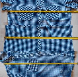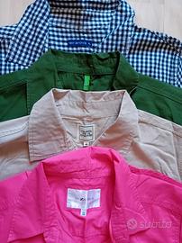 4 camicette in ottime condizioni,il modello è simile:manica corta,taschine sul petto,sciancratura in vita,sono di vari marchi,in cotone,misure in foto