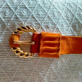 2. cintura color arancio, in camoscio con fibbia dorata, cm 75/30