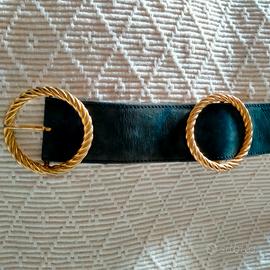 1. cintura color nero, in camoscio con fibbia dorata, cm 80/32