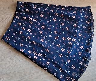 La gonna blu con motivi floreali (foto 1 e 2) è fresca e frusciante, in viscosa al 100%.