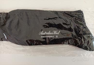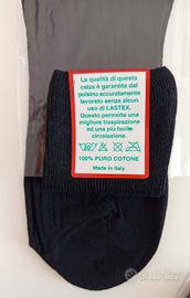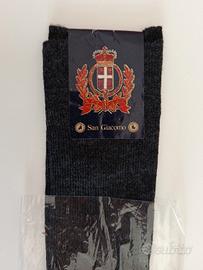Set di 4 paia di calzettoni da uomo, così composto: - 1 paio di calzettoni Australian Wood irrestringibile marca San Giacomo. Colore nero melange. 60% lana vergine, 20% acrilico, 20% poliammide. Taglia 11. Nuovo in confezione originale. - 3 paia di calzettoni Calza Sanitaria in cotone. Colore nero. Taglia 10 e mezzo/11. Nuove, con cartellino.