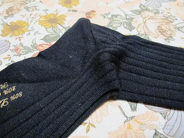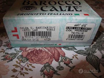 Calzino corto da uomo vintage firmato Barocco Calze, made in Italy. Indicati sulla confezione come calze sanitarie. Taglia 11 1/2 - 12, corrispondente a 42/44. Composizione: 80% lana, 20% altri materiali. Filato di qualità, sottile ed elegante, adatto anche alle mezze stagioni. La scatola originale contiene 3 paia di calzini neri, e 1 paio di calzini grigio scuro, NUOVI ancora nel loro cellophane. In foto ci sono le misure. Ritiro a mano o spedizione con TuttoSubito.