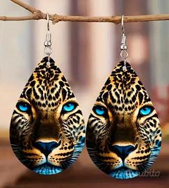 4 paia di originali orecchini in legno plastificato di cm 5x3 con tigri e leopardo.il prezzo si riferisce a tutto l'insieme