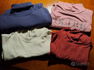 3 sottogiacca smanicati, cotone, collo lupetto, Ragno e Motivi. 1 dolcevita sottogiacca, manica corta, 100% pura lana, viola, Massimo Rebecchi.