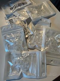 Vendo stock di 48 paia (96 pezzi) di chiusure per orecchini in silicone trasparente con inserto in metallo dorato. Il lotto è diviso in 8 bustine sigillate (12 pezzi/6 paia l'una). Caratteristiche: - Materiale: Silicone morbido anallergico con blocco dorato. - Design: Supporto a disco, ideale per orecchini pesanti o lobi delicati. - Condizioni: Nuovo, mai aperto. Prezzo per l'intero stock: 8 € Consegna: Ritiro a mano a Savigliano (CN). Spedizione con TuttoSubito (a carico dell'acquirente). Ideale per chi crea bigiotteria o per chi perde spesso i gommini!
