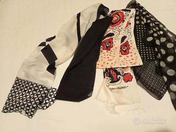 4 scarpette da donna :1 di seta vari colori con marchio metallico 2-a pois bianca e nera 3 -blu leggerissima 4-bianca e nera a disegni geometrici.Nuove molto belle con prezzo ribassato.