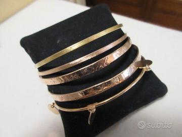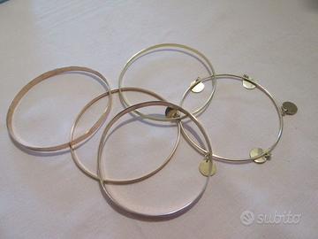 5 bracciali rigidi in argento dorato.