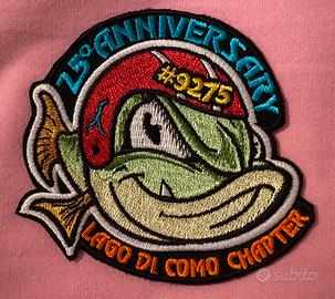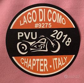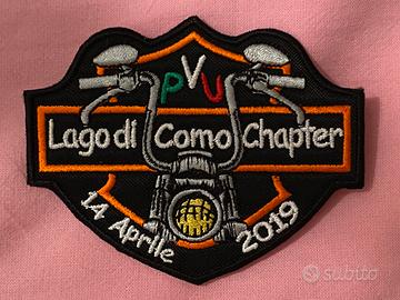 5 pach / toppe Lago di Como Chapter - ideali per motociclisti Harley Davidson - in ottime condizioni. - 2 con il logo del Lago di Como Chapter, datate 14 Aprile 2019. - 2 rotonde con il logo PVU, datate 2018 - 1 anniversario 25th
