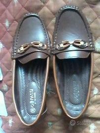 5 scarpe nn. 35, 36, 37, 38 + stivali regalo > ALTRE FOTO disponibili < 1) VERA PELLE n.37 morbido mocassino marca "Vainer" senza stringhe con due piccole fascette elastiche laterali. Colore "somalo amber" (marrone medio).Suola in vera gomma, marca Maori made in Italy- Come nuove: interno, esterno e suola perfetti. eur 50 tratt. PIU' in REGALO STIVALI, neri n.38 : Doppia cerniera. Punta rinforzata. Decorazioni matalliche. Usati pochissime volte, parte della "scarpa" ottima, MA sono stati malriposti, con piegature che hanno generato alcune spellature superficiali sul gambale, adatti ad essere indossati con i pantaloni. ..................................... 2) mocassino n.38 tacco 3 cm ."Q.Passi", no stringhe. Decorazione a fronte: allaccio e 2 brillantini. NUOVO, similpelle bicolore marrone medio con rifiniture e retro in marrone chiaro. eur 21 tratt. ..................................... 3) scarpe n.36 suola carroarmato (cm 1,5) tacco 7 cm. "Fiori e Spine" NUOVE, similpelle colore nero. eur 26 tratt. ..................................... 4) Sneaker n.36 marca SUPERGA "Superga Fashion Sneaker" in PELLE stampata effetto coccodrillo, interno in LINO (non è il modello in sintetico). Fondo platform alto 4 cm. Suola vera gomma, classica a grani. colore: marrone scuro, bordo piattaforma bianco. Indossate ca. 4 volte. Perfette. eur 45 tratt. ( il nuovo è a 120 ) ................................ 5) "Superga Sport Sneaker" n.35, tomaia in morbida pelle aereata microfori. Fondo platform alto 3,5 cm. Scuola a cassetta in gomma naturale vulcanizzata. colore: bianco avorio, con rinforzi in rosa fluo. Indossate 2 o 3 volte, praticamente come nuove. Perfette. eur 45 tratt. ( il nuovo è a 120 ) ------------------------------ >> ALTRE FOTO disponibili << Possibili abbinamenti e sconti con acquisti multipli e/o anche sugli altri miei annunci. Per esempio: SCONTO "3 x 2" Visione e consegna gratuita in Torino, oppure spedizione.