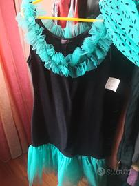 - elasticizzato con scollo e parte bassa (gonna) fatto di ruches in tulle verde smeraldo, ancora con cartellino. Marca laura-bi (estivo)