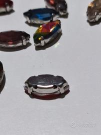 Ordinati su temu ma non corrispondevano a quello che mi serviva, vendo per inutilizzo, i castoni hanno i 4 buchini per permettere di cucire gli strass, dimensioni 7 x 15 mm. Possono anche essere tolti dal castone.