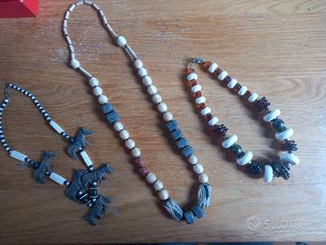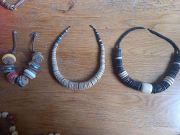 6 collane africane molto particolari del Sud Africa Città del Capo realizzate in legno, sughero, pietre e osso, raffia e tessuto vari tipi vendibili anche singoli pezzi.