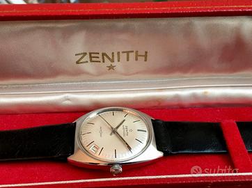 Cassa acciaio da 34 millimetri ad esclusione della corona di carica,dial e sfere originali in condizioni eccellenti,corona originale ok,fondello a vite ok,cassa originale,datario ad ore 4 ok,movimento swiss made originale zenith cal.2562PC a carica automatica perfettamente funzionante con buona tenuta del tempo e riserva di carica,cinturino,fibbia e scatola originale come da foto non possiedo card garanzia.