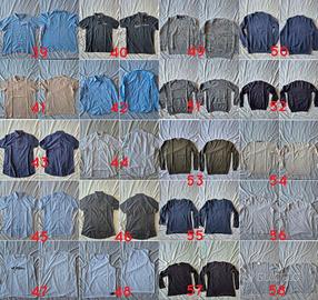 Intero lotto set guardaroba estate, autunno, inverno, primavera, usato ma in ottime ed eccellenti condizioni generali, fatta eccezione per un paio di indumenti (da "rivedere"), il tutto perfettamente indossabile ed utilizzabile in svariati contesti (lavoro, casual, classico, sport, mare), composto da 88 capi di abbigliamento misti formato da t-shirt, canotte, magliette manica lunga, maglioncini, pantaloni, jeans, bermuda e costumi, varie misure, ma grandezza generale pressocché uguale al di là delle taglie, tante marche originali tra cui Puma, Legea, Umbro, Suns, Bench, Kappa, Lonsdale, Spalding, Maui & Sons, Sundek, Brugi, Gian Marco Venturi, New Look, Original Marines, Alcott, Bershka, Piazza Italia, Kiabi, Cotton & Silk, Oviesse, Candida e tante altre ancora…