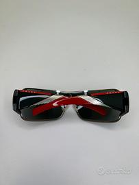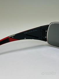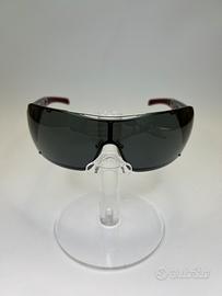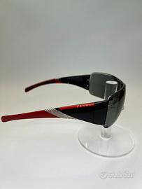 90s Occhiali da sole Prada SPS 53H 7OV-1A1 3N Sport Black Wrap Mask vintage – Made in Italy, nero e rosso.