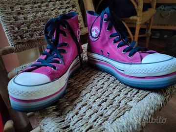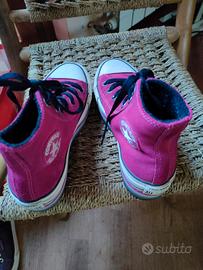 Vendo Converse All Stars vera pelle, colore fucsia, n. 36,5. Molto belle sia con gonne, sia con pantaloni. Usate poco, in buone condizioni.