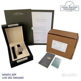 A. Lange & Söhne originale in tutte le sue parti, molto raro, revisionato in ottime condizioni, segni di usura assenti o poco visibili, scatola originale ed estratto ufficiale degli archivi A. Lange & Söhne del 10 febbraio 2022, garanzia/dichiarazione di vendita nostro negozio valida per 12 mesi.