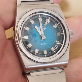 VENDO O PERMUTO/SCAMBIO OROLOGIO ZENITH DEFY ANNI 70 VINTAGE Raro quadrante Turchese 'Tiffany"modello A7682 CASSA JUMBO MM.38X 45 ACCIAIO FONDELLO E CORONA A VITE (CASSA BRACCIALE SONO GLI STESSI UTILIZZATI ANCHE PER ZENITH PRIMERO ESPADA) Sub 300m Corona a vite originale con logo Zenith RARISSIMO BRACCIALE ORIGINALE ACCIAIO FLAT LOBSTER * MOVIMENTO AUTOMATICO DI MANIFATTURA ZENITH 2562PC ALTA FREQUENZA IN OTTIME CONDIZIONI ESTETICHE E DI FUNZIONAMENTO. REVISIONATO E RIPRISTINATO A NUOVO CON GARANZIA (SCADUTA). DI ZIRONI NOTO RIVENDITORE DI BOLOGNA. Possiedo inoltre collezione Defy anni 70 composta da: Zenith Defy Plongeur sub 600m, Zenith Defy Gauss Black Dial(raro solo 550 esemplari), che vendo o permuto anche singolarmente.