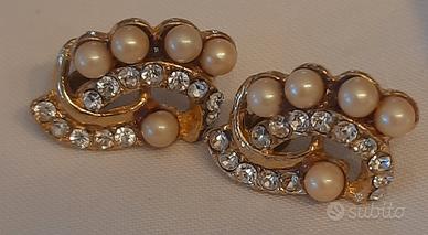 Gruppo di quattro Orecchini Vintage Luminosi a lobo Metallo Smaltati Strass e perline Uno 14 euro Tutti 50 euro