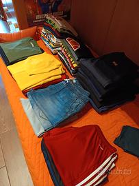 Circa per 14/15 anni .Misto: canotte, t-shirt, pantaloncini, Bermuda, pantaloni tuta, felpe ,tute complete,maglioni,maglie manica lunga,jeans ,Polo.Varie marche.Tutto in condizioni ottime,alcuni pezzi come nuovi.Accordo sul prezzo e sugli articoli di marca come: Maui,Nike,Jordan,puma,Adidas,Everlast,Guru,Ellesse.Per maggiori info scrivere,posso mandare foto in privato degli articoli che interessano.Per l'intero guardaroba prezzo scontatissimo