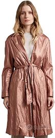Di Oltre il bellissimo e nuovissimo trench in tessuto misto viscosa dall'effetto metallizzato; apertura frontale con collo a revers e fusciacca da annodare in vita; tasche a maxi filetto, spacchi laterali.