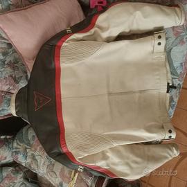 Giacca pelle sfoderabile taglia 44,tuta da acqua,guanti ,fascia lombare tutto marca Dainese. Casco Nolan richiesta 300 euro