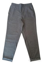 1. € 35.00 Pantaloni joggers donna con pioggia di micro borchiette che conferiscono lucentezza, mélange, elastico in vita dietro, tasche lungo i fianchi e risvolto in fondo. Brand: "Oltre" Colore: grigio Tg. M Misure: vita cm 35 cavallo cm 28 lunghezza cm 63 78% poliestere 22% viscosa Come nuovo. 2. € 15.00 Pantaloni donna a gamba larga, leggeri, chiusura con 2 bottoni e zip, 2 tasche laterali, 2 finte tasche posteriori. Ampi e comodi. Brand: Calliope Colore: celeste tg. L Misure (LEGGERE BENE): vita cm 40 cavallo cm 36,5 lunghezza cm 113 larghezza fondo cm 27,5 Chiedete pure altre misure. 97% poliestere 3% elastane Come nuovo. 3. € 10.00 Pantaloni donna modello ¾ con motivo floreale a rose in rilievo, piccoli spacchi laterali sul fondo della gamba, elastico nella parte posteriore della vita, leggermente arrotondati sui fianchi. Brand: Ghungroo Colore: nero tg. II (LEGGERE BENE LE MISURE): vita cm 41 cavallo cm 29 lunghezza cm 96 Chiedete pure altre misure. 50% viscosa 50% poliestere Come nuovo. Fornisco altre foto dettagliate su richiesta.