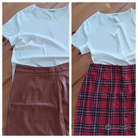 Vendo abbigliamento donna tg.L/XL nuovo o in ottimo stato: 1 vestito nuovo in pizzo nero tg.L 1 vestito nuovo leopardato marrone/oro tg.L 1 camicetta similseta crema 1 gonna similpelle marrone metallizzato 1 gonna similpelle nero 1 gonna similpelle nocciola 1 gonna stampa scozzese 1 body pitonato 1 paio di pantaloni lunghi tezenis tg.L