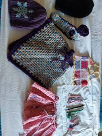 vendo in blocco per non utilizzo, oggetti quali braccialetti, portachiavi, portapenne, portaspazzolini, abbigliamento bimba(poncho, gonnellino, canottiera, sciarpa, cuffia), accessori uomo/donna(sciarpe, scaldacollo, passamontagna).Il tutto è stato realizzato artigianalmente all'uncinetto.