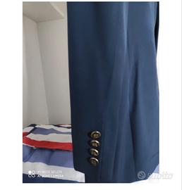 Giacca, pantalone e gilet, marca Carlo Pignatelli. Colore blu scuro e gilet damascato,usato 1 sola volta (matrimonio), taglia 46 - 48.Lo sposo e’ alto 1 metro e 72.igienizzato