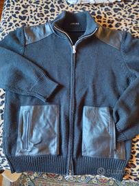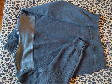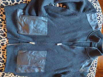 Giacca con doppia zip nera con tasche e riporti sulle spalle in pelle, Sisley. Euro 10