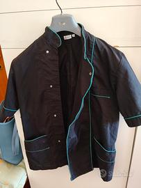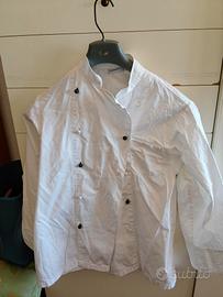 Vendo tutto insieme: 2 giacche da cuoca, 2 pantaloni, 1 giacca a mezza manica. taglia S. Le giacche bianche presentano qualche macchia che con uno specifico smacchiatore andranno via.