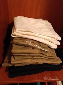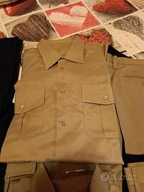5 camicie verde militare, 2 pantaloni blu invernali pesanti in lana, 3 pantaloni in cotone verde militare, 3 pantaloni in cotone bianco della divisa estiva.