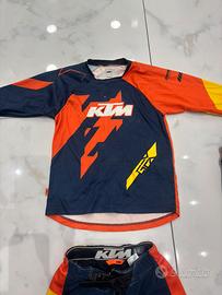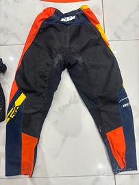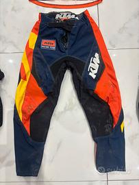 Vendo abbigliamento motocross ktm completo di ginocchiere e guanti. La misura del pantalone e S la maglia misura M .