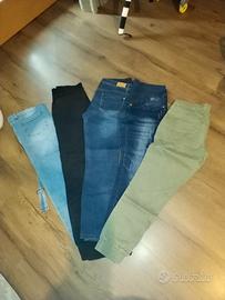 Abbigliamento premaman. 4 paia di jeans, una salopette in jeans, un paio di calze, un completo con leggings e maglia premaman/allattamento