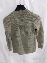 cardigan L.L.Bean verde con texatura a piccoli rombi design aperto sul davanti e due tasche applicate maniche lunghe orlo e polsini a costine Tg S.