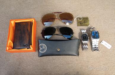 - 1 paio di occhiali Rayban Aviator moderni con custodia (le lenti presentano qualche riga): omaggio con lo stock