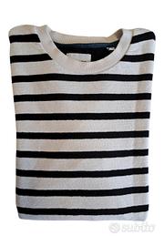 1. € 10.00 Pullover uomo girocollo, maniche raglan, taschino sul lato sinistro del petto, bordi rifiniti a taglio vivo e arrotolati. Brand: "Jack&Jones" Colore: grigio intrecciato a filati di altri colori. tg. L Misure: spalle: non c'è il punto di cucitura delle spalle. distanza ascelle cm 55 lunghezza cm 66 lunghezza braccio cm 78 (misurato dal collo) Usato in ottime condizioni. 2. € 10.00 Pullover uomo a girocollo, fantasia a righe orizzontali. Brand: Only & Sons Colori: bianco e nero tg. S Misure: spalle cm 44 distanza ascelle cm 50 lunghezza cm 69 lunghezza braccio cm 61 3. € 5.00 Pullover uomo girocollo, taschino pettorale a sinistra e toppe decorative ai gomiti. Trama a quadratini in sovraimpressione. Brand: non c'è etichetta con il brand. Colore: grigio. Toppe a righe bianco e blu. tg. M Misure: spalle cm 43 distanza ascelle cm 50,5 lunghezza cm 64,5 lunghezza braccio cm 62,5 Composizione tessuto 35% viscosa 35% modal 20% poliamide 10% elastane Usato in ottime condizioni. Scegli quello che ti piace e creo l'annuncio Fornisco altre foto dettagliate su richiesta.