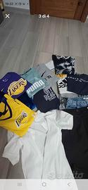 Vendo abbigliamento misto, usato ma in buonissime condizioni. -2 tute complete Kappa 12.00 € l'una -1 jeans, scuro (DUCA HOMME) 15.00€ -1 jeans chiaro(piazza italia) 10.00 € -1 pantalone adidas in acetato 15.00€ -1 pantalone di tuta adidas in cotone 7.00€ -1 camicia bianca colletto alla coreana 7.00€ ⁃ T-shirt nike grigia,puma verde acqua,adidas bianca,Benetton blu,recycle idols bianca e HM marmorizzata 5.00€ l'una - maglia tommy blu 15.00 € - canotta lakers gialla 10.00€ T-shirt nike lakers viola 1 5.00€ Maglia M DUCA homme in ciniglia 10.00€
