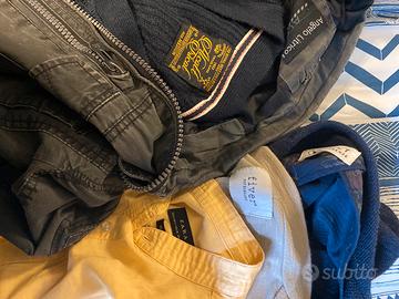 Causa trasloco vendo stock abbigliamento uomo a 5,00 il pezzo: - 1 Jeans Hermitage taglia 46 - 2 jeans Zara taglie 38 e 40 - 1 jeans new job brand taglia 30 - 1 pantalone a quadretti velluto Berna taglia 44 - 1 jeans nero 42/44 - 1 pantalone Besilent color mattone taglia 34 - 1 pantalone corto verde militare HM . - 1 gilet lana manica lunga blu Alcatt tricot taglia M - 1 giacca blu PLT cotone taglia M - 1 giacca avana fiver cotone taglia M - 1 camicia Zara giallo pesca - 1 giubbotto nero lavato Angelo Litrico
