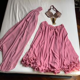 Abiti ed accessori per Danza del Ventre usati molto poco, in più che buone condizioni, taglia S (gonna rosa e bianca volendo anche adatte a M) vendo in unico lotto. Doppi veli rossi bordati in argento e fascia per gonna rosa come top inclusi.