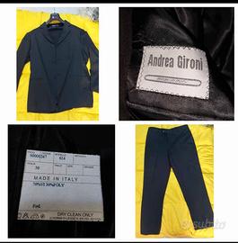 Completo elegante Andrea Gironi, taglia 50 italiana. Colore scuro uniforme, ottimo per cerimonie o ambiente lavorativo.