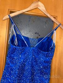 colore Blu ,con gonnellone ampio e vestito ricoperto di strass.
