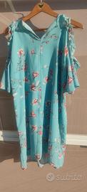 👗 .Abito turchese marca Miss Miss in viscosa, elegante e fresco – fantasia primaverile Foderato Ha una fantasia celeste molto delicata con piccoli motivi floreali tipo roselline, che donano un tocco raffinato e romantico.